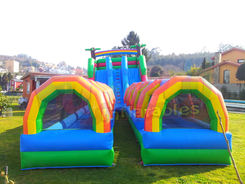 El alquiler de diapositivas inflables y deslizables complejos, como su nombre lo indica, está diseñado para juegos. ¿Cuáles? - ¡Muy, muy mojado! En la piscina inflable al aire libre hay una piscina real, que, si lo desea, puede llenar con agua y dos toboganes. Y esto significa que en él, puede montar una destilación, mientras que da un montón de salpicaduras de espectadores.