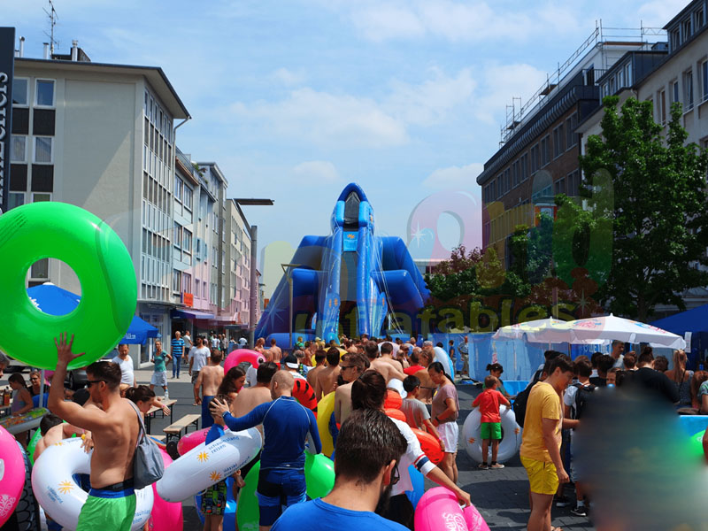 el tobogán acuático inflable se coloca ampliamente en parques, plazas, jardines, escuelas y algunos otros centros de juego;