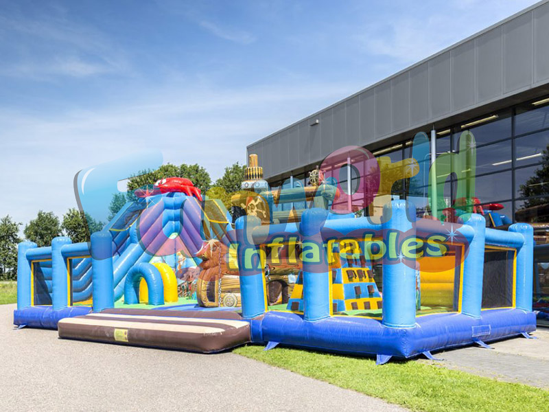 Además, este patio de juegos múltiple Seaworld está equipado con un gran espacio de rebote y tiene un amplio escalón para un fácil acceso al área de rebote. Este castillo hinchable también tiene un práctico bolsillo en el pilar para que puedas hacer publicidad. Además, este gorila multiplay tiene 3D bajo las criaturas del mar en la entrada y una diapositiva que realmente completa el look. Además, nuestros hinchables multiplay son adecuados para niños pequeños y mayores y es muy entretenido. ¡Aliente a los niños a esquivar los obstáculos y a sumergirse en una historia bajo el mar y chapotear con los amigos de Seaworld!