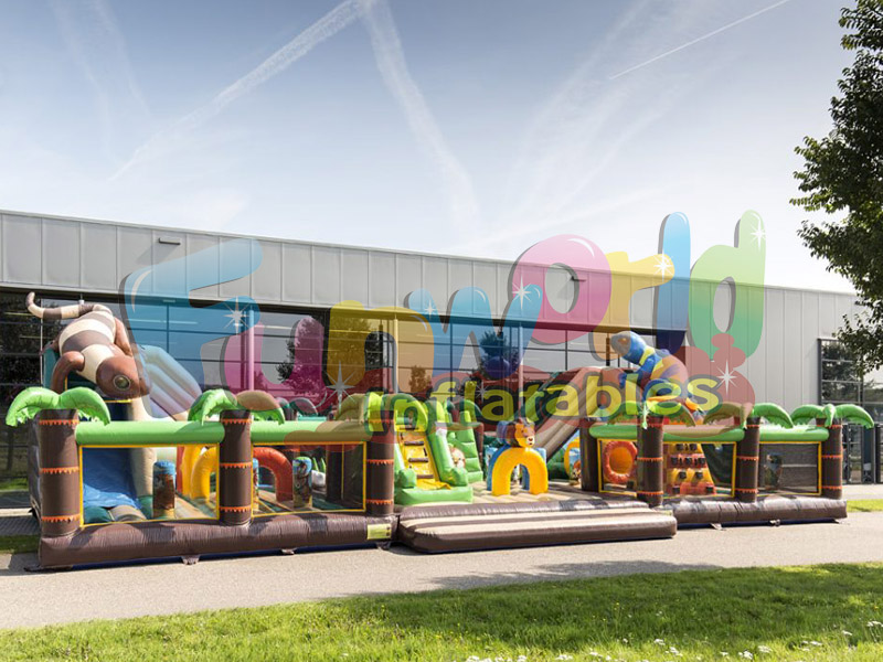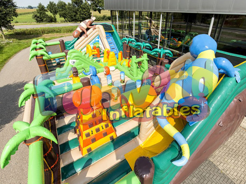 Funworld inflable ahora también tiene esta gran área de juego disponible en 10 x 20 metros. Los gorilas al por mayor del mundo de la jungla son perfectos para un gimnasio o afuera en el campo de fútbol. Además, estos inflables grandes de grado comercial al por mayor son muy adecuados para eventos más grandes. Además, hay espacio para muchos niños y pasarán horas disfrutando de los muchos obstáculos, toboganes y la torre de escalada.
