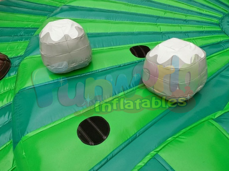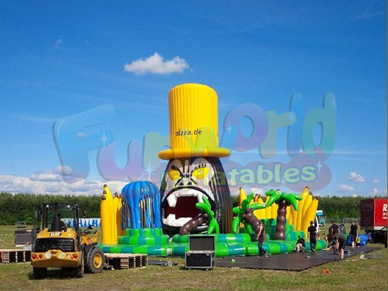 Este gigante inflable promocional a medida fue un gran éxito en el festival en Alemania. Con la plataforma y la cabeza separadas, y luego con diferentes elementos en el interior, como camas con rebotes y estanques con pelotas, los asistentes a la fiesta se entretuvieron incluso después de que se pusiera el sol. La cabeza es una cúpula hinchable cerrada, con la opción de colocar luces y altavoces de discoteca. La isla de mono inflable es el tamaño total, incluidas las áreas de envolvente y mate.