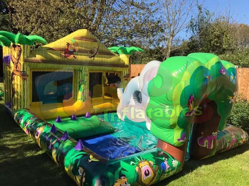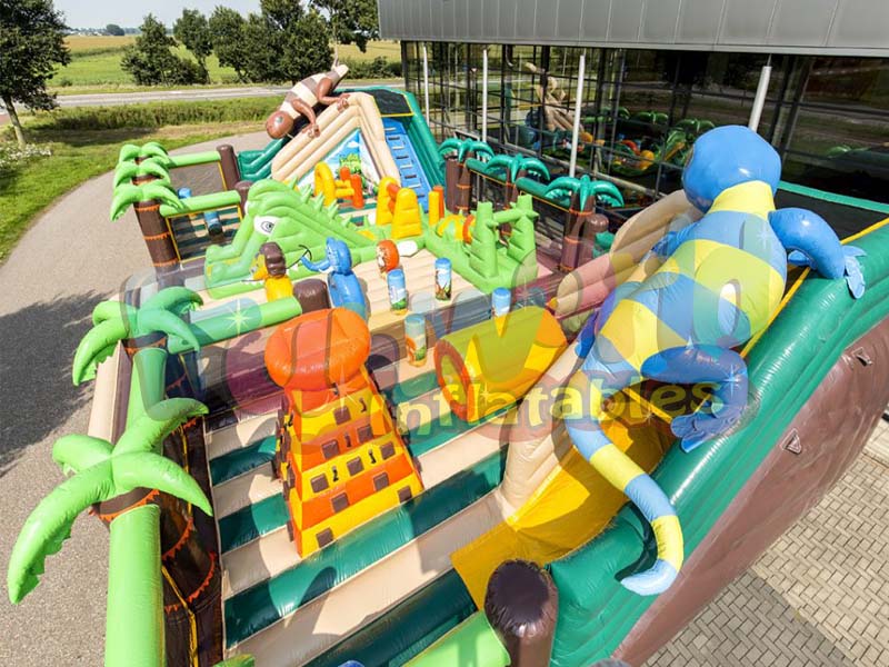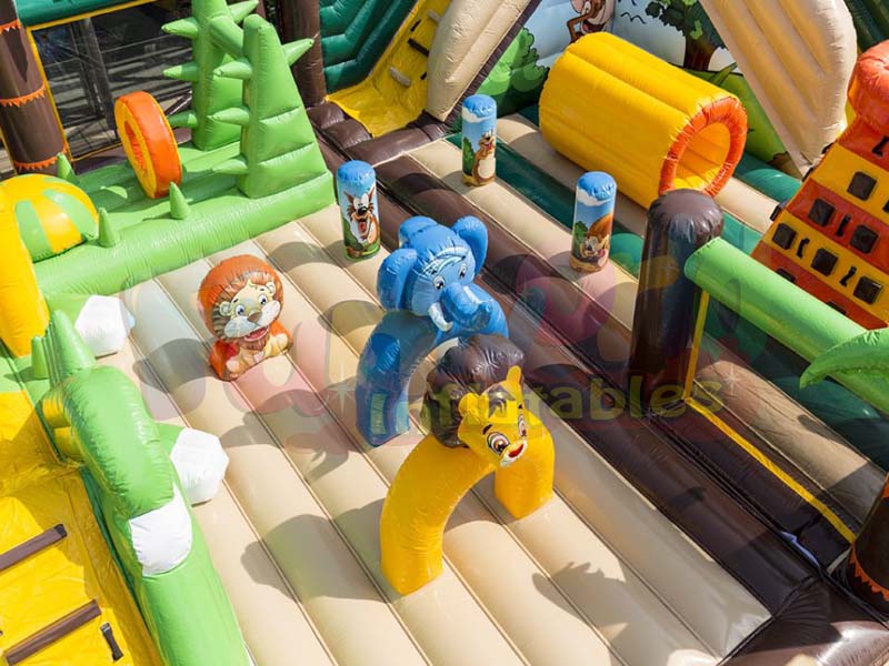 Este tipo de estructura inflable de safari es muy popular para animar cualquier tipo de evento, ya sea en un carnaval, en un campamento, en un parque de vacaciones o para una asociación, ayuntamiento, negocios, árboles de Navidad, etc.