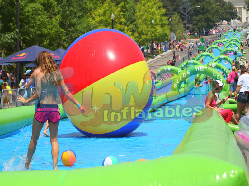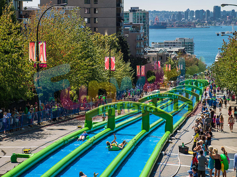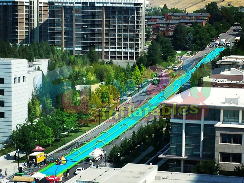 Deslice la ciudad es un tobogán inflable más largo que trae lo fresco al verano. ¿Mencionamos 1000 pies? Eso es más de tres campos de fútbol de punta a punta.