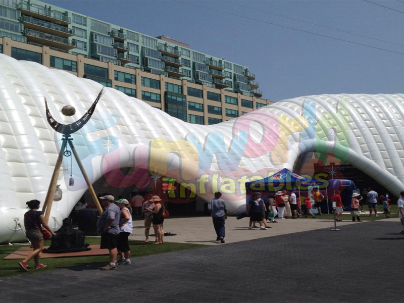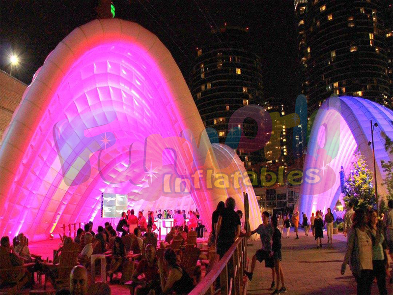 Ontario'nun Celebration Zone Pavilion'da gerçekleşen olayları barındırmak için iki ikonik, büyük ölçekli, geçici yapıya ihtiyaç vardı, ancak site kurulumu ve yıpranma süreleri için sıkı zaman kısıtlamaları tasarım ekibi için bir zorluk oluşturdu. Bu açıklıklı bilge şişme kemerler, normal geçici pavilion tipi build.build ve özel, yüksek basınçlı şişirilebilir teknolojimiz içeren iki büyük şişme pavyonun kurulumuna karar vermiştir. İki pavyon, 10.000 feet kare ve 3.000 feet kare alanlarını kapsayacaktı. Şişirilebilir yapı, tamamen kaplanmış tekstillerden inşa edilecek ve hiçbir katı yapısal eleman içermeyecek - şişirilebilir yapılar ile elde edilebilecek olanın sınırını zorlayacaktı.