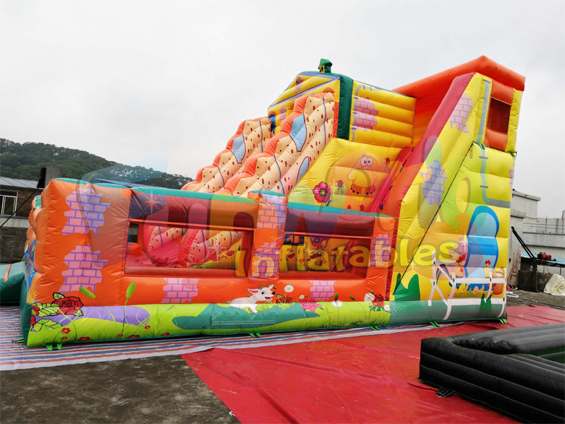 Dieses Kinderspringschloss ist eine Herausforderung für kleinere Gäste (und Ihr Budget). Der aufblasbare Park verfügt über Tunnel, Tackle-Dummies, Squeeze-Spiele, eine Kletterwand und Rutsche. Als zusätzlicher Bonus benötigt das Bounce House für Kinder und Erwachsene nur 1 Operator, da das 180 ° -Design Benutzern erlaubt, auf der gleichen Seite des Geräts ein- und auszutreten.