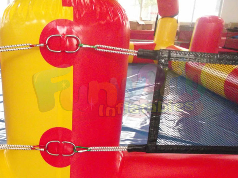 Deze opblaasbare koepeltent heeft bovendien opblaasbare trampolines en er is een opblaasbaar zwembad onder de tent. De draagbare zwembaden kunnen de zon blokkeren en de kinderen beschermen die spelen en zwemmen in het zwembad onder het opblaasbare waterpark met glijbaan. Ook kunnen de kinderen stuiteren op de opblaasbare trampolines bij de tent. Deze opblaasbare tent met waterzwembad en trampoline is geschikt voor spelen op het waterpark of in de buurt van het strand.