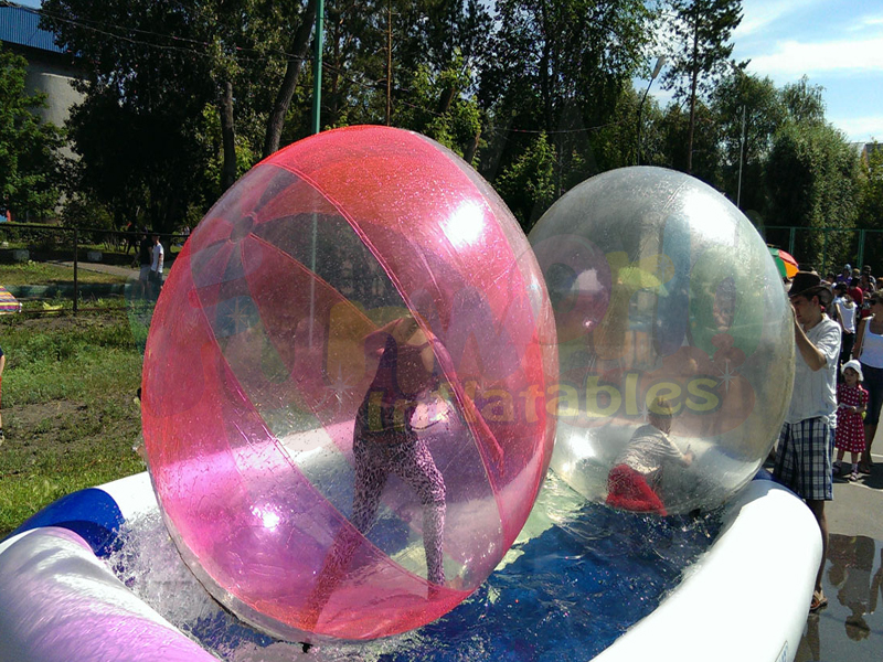 In de doorzichtige opblaasbare loopwaterbal wordt één persoon geplaatst. De loop op de waterbel is luchtdicht, dus menselijk waterbal kan zowel op het land als op het water worden gebruikt voor entertainment. Je kunt het ook gebruiken voor teambuildingwedstrijden.