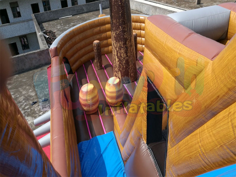 Een paar boekaniers begroeten elke speler bij de ingang van het schip, en binnen kinderen kunnen stuiteren in het ruime voorjaarsgedeelte, door de pop-up obstakels vechten van genieten van de klim en glijbaan bij de achtersteven.