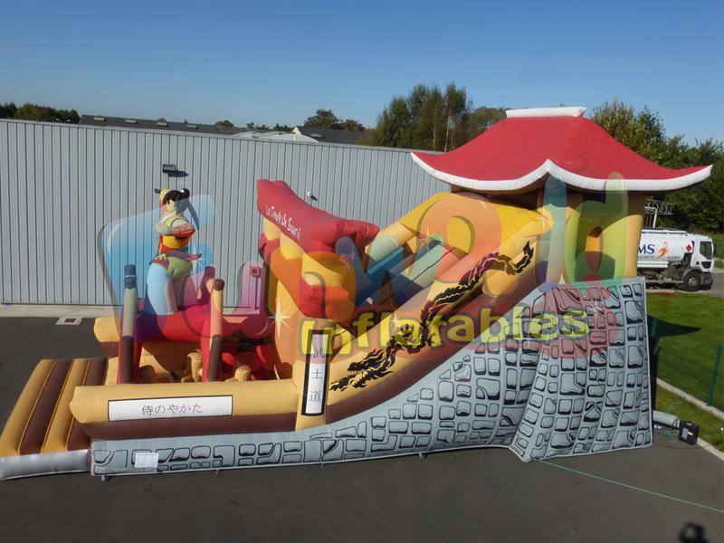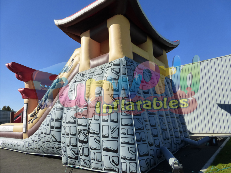 Deze opblaasbare glijbaan past in zeer grote zalen en achtertuinen van behoorlijke omvang.