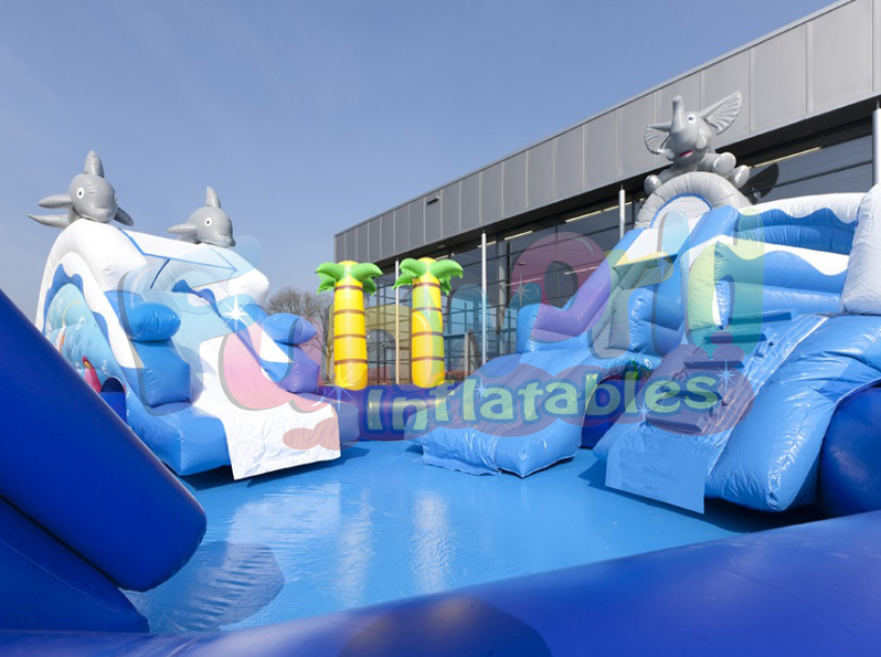 Welkom bij het tropische opblaasbare waterpark van dolfijnen, het bekendste herkenningspunt van een tropisch paradijs. Geniet van dit thuis ver van huis met deze kleine paradijsvariant. Op dit eiland beschermen ze het grootste fort ooit ontdekt door piraten.
