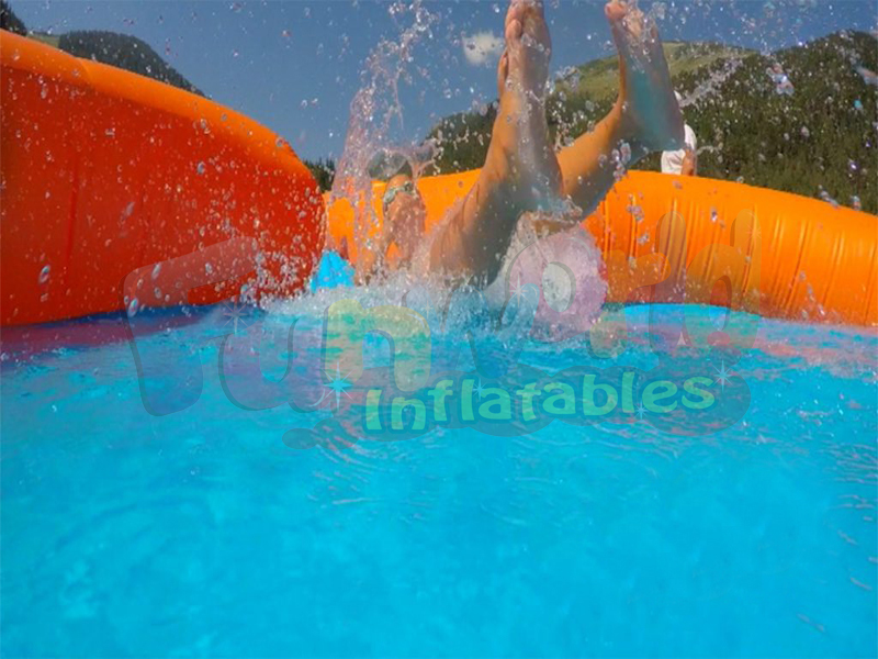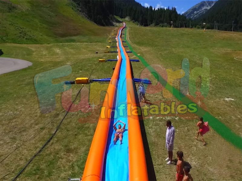 De superglissade is een zeer lange glijbaan in water van enkele honderden meters op een opblaasbaar matras. Het water wordt vanaf de bovenkant van de baan verzonden (1e module), de opblaasbare slip n schuifdoek wordt dan zeer glad gemaakt, het blijft alleen om te lanceren. Om ervoor te zorgen dat de gebruiker niet halverwege de beweging stopt, is het noodzakelijk om een helling van minimaal 20% te hebben. Aan elke kant van de glijder naaien we de matras van de rollen om de gebruikers te beschermen. Aan het einde van de dia eindigde de gebruiker in een afwerkingsgebied van Ø4,7 m. Verbind de 20 m-modules om een superschuif + aan uw lengte te maken.