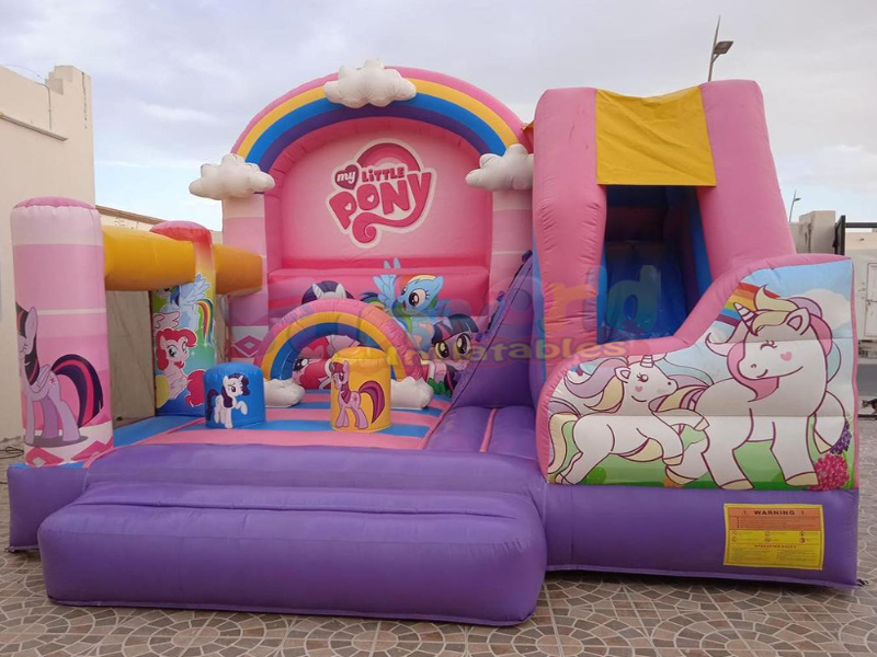 Ce petit transat gonflable poney est une grande maison gonflable avec rampe d'escalade et toboggan. Capacité d'accueil d'environ 8 à 10 enfants. Une fois la journée de jeu terminée, les rabats zippés permettent de dégonfler et de démonter facilement le transat pour le ranger. Le videur est construit à partir de vinyle 100 % PVC, de ses piliers et poutres verticaux jusqu'à ses parois coulissantes. Toutes les zones à forte contrainte, y compris la surface de rebond, les côtés du matelas, le fond et le toboggan, sont fabriquées à partir de PVC de 18 onces (0,55 mm) de qualité industrielle. Ce matériau PVC increvable est beaucoup plus résistant (environ 5 fois plus résistant) que le nylon utilisé dans les unités de moindre qualité, car il ne se déchirera pas, ne se décolorera pas, ne s'usera pas à l'usage et ne moisira pas, et il est beaucoup plus facile à nettoyer.