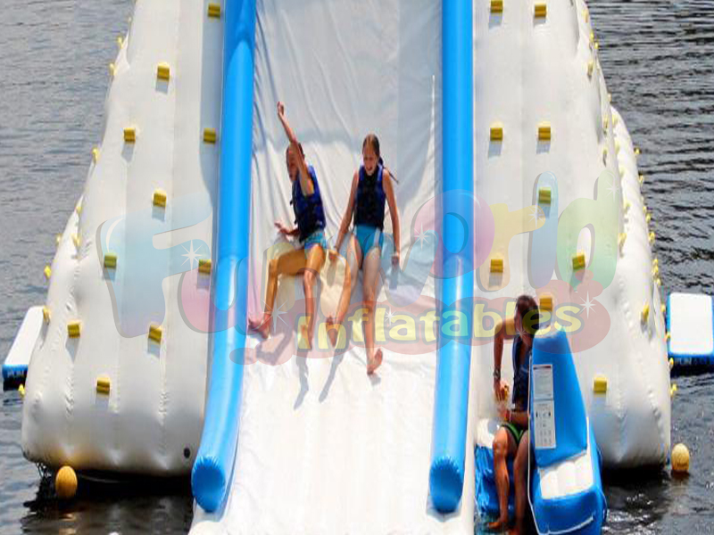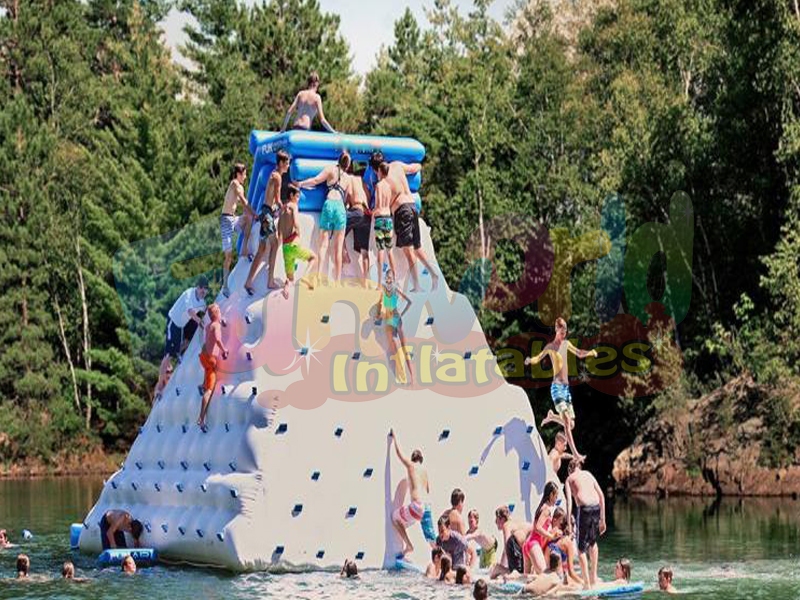 Cette montagne d'escalade flottante s'élève à une hauteur de 16 et comprend 3 murs d'escalade gonflables de lacs géants différents avec un terrain variable et un toboggan très rapide. Faites de votre camp ou de votre lieu de villégiature l'endroit idéal cet été avec cette pyramide d'escalade gonflable et ce toboggan. Lac jouet perfection.
