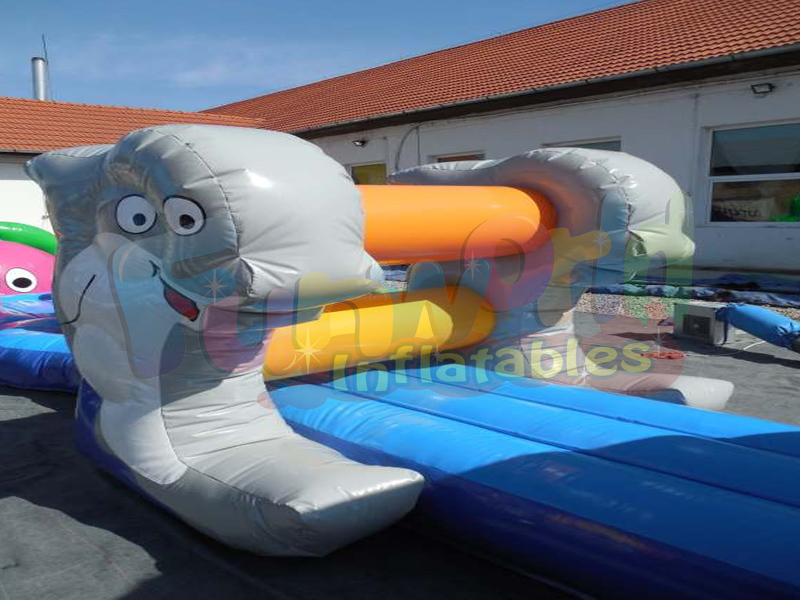 nous fabriquons des structures gonflables sur mesure pour piscines et les conceptions les plus populaires et les plus inventives utilisent le principe du flux constant, le principe de l’alimentation. Un débit constant signifie qu'ils ont un flux d'air constant alimenté par un ventilateur électrique. Pour les flotteurs gonflables géants, nous fournissons en standard 10 mètres de tuyau de 6 pouces pour nous assurer que le ventilateur est situé suffisamment loin de la piscine tout en fournissant suffisamment d'air pour maintenir le gonflable en état de fonctionnement. L'avantage d'un parcours d'obstacles flottant est la capacité de repousser les limites de l'imagination dans la conception et de transformer littéralement n'importe quoi en jouets gonflables de piscine.
