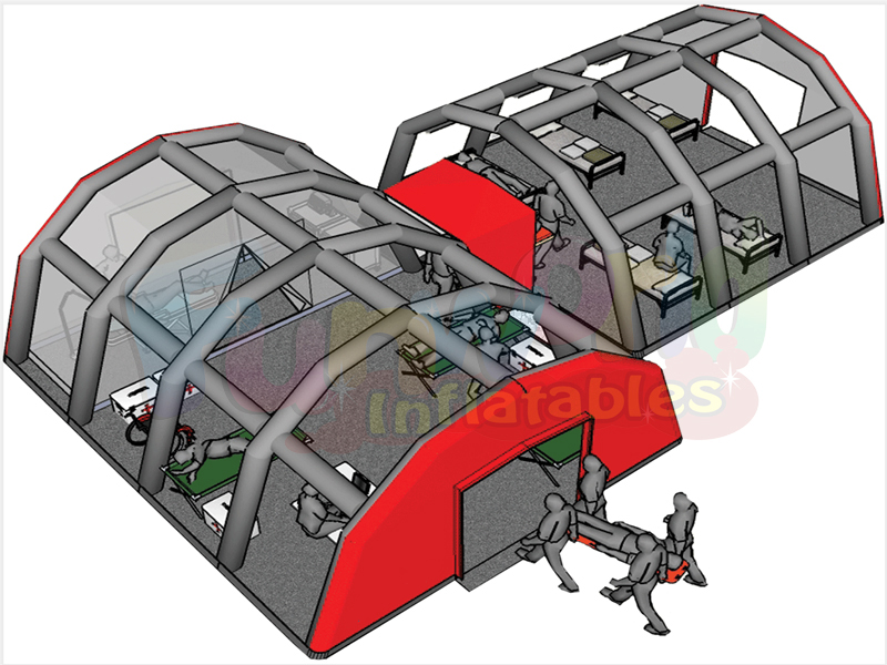 Les abris gonflables sont très polyvalents et peuvent s'adapter à de multiples tailles, configurations et applications telles que l'hébergement, les espaces de vie, les salles de réunion, les tentes médicales, la protection générale contre les intempéries ou les zones d'entretien.Il est très populaire en cas de catastrophe.