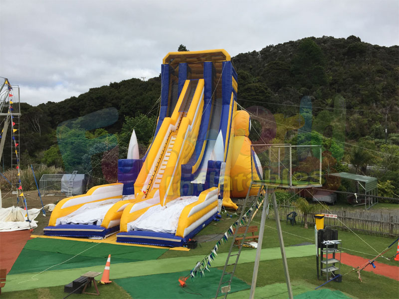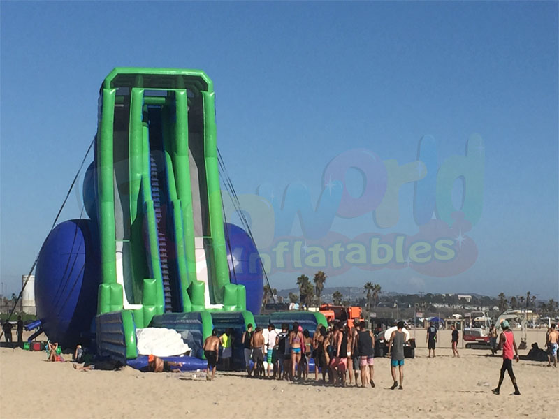 Voici le toboggan gonflable le plus haut du monde! Les toboggans aquatiques gonflables de qualité commerciale vont sûrement conquérir l'industrie avec une combinaison de la technologie la plus innovante, des normes de sécurité les plus strictes et d'une conception révolutionnaire pour un parcours inédit dans une unité gonflable. La glissière du ciel est la plus grande glissade gonflable au monde, combinant deux attractions palpitantes dans une unité pour apaiser le junkie de l'adrénaline.