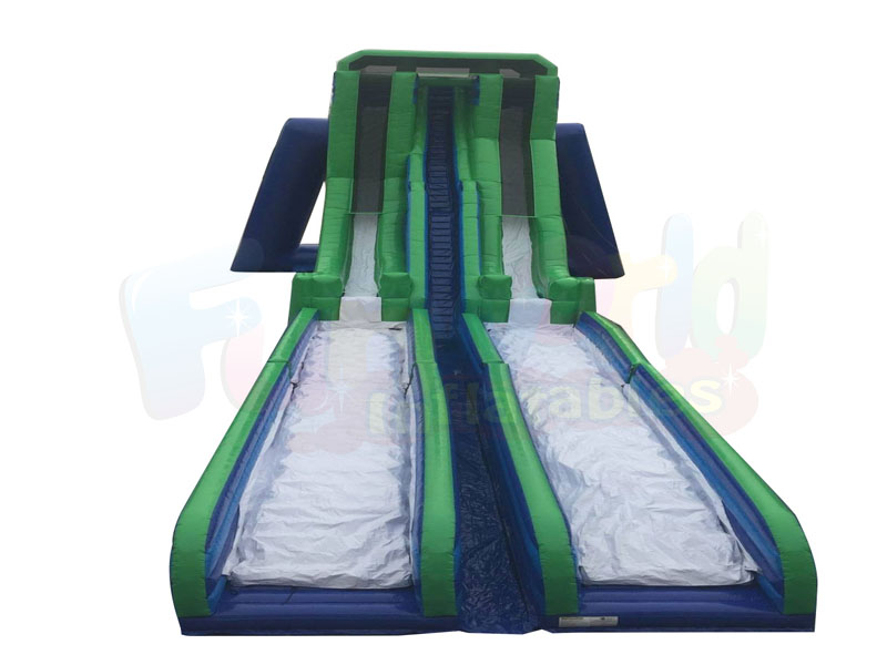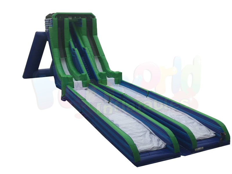 Avec une chute verticale de 30 pieds d'un côté et le très rapide VertiGo Super Slide de l'autre, tous deux terminés par un «kicker» qui lance le coureur dans les airs avant d'atterrir en douceur, cette bête ne décevra pas même le plus grand frisson chercheur. La sécurité est une priorité et la preuve en est la conception. Des toboggans gonflables, branchés, pleins de gaz, amèneront de nombreux enfants à se démener pour jouer. Une vague d'enfants vient juste de finir de jouer, une vague d'enfants est allée jouer, y a-t-il une sorte d'argent qui "souffle" le sentiment?