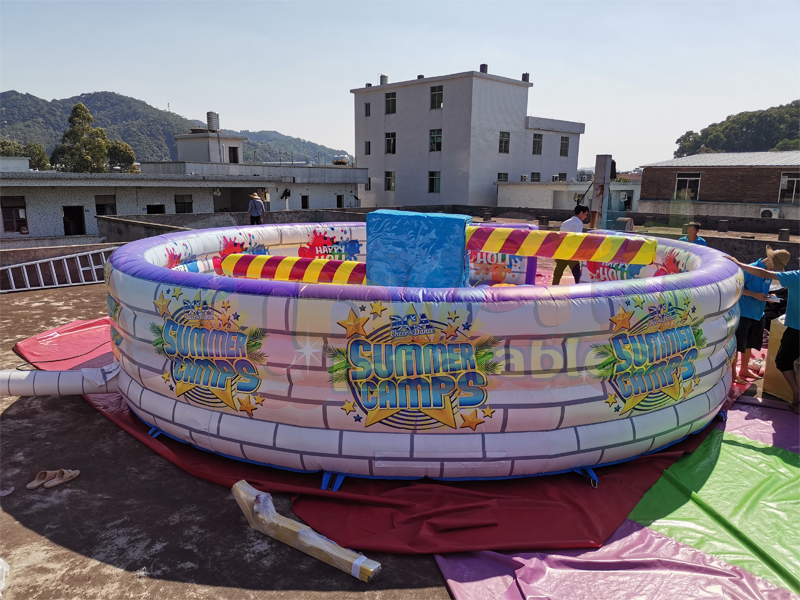Meltdown è il nostro selvaggio gioco d'azione a 8 giocatori che mette alla prova la tua resistenza, agilità e reazioni. Non uno ma due bracci del braccio rotante provano a toglierti dal podio. Devi abbassarti o saltare oltre il boom della schiuma. Questa fusione gonfiabile in vendita è il miglior divertimento per i bambini.