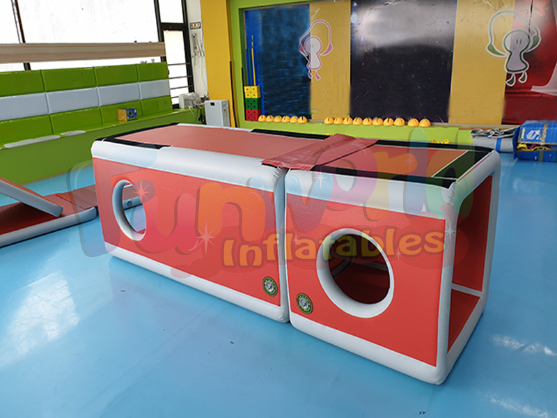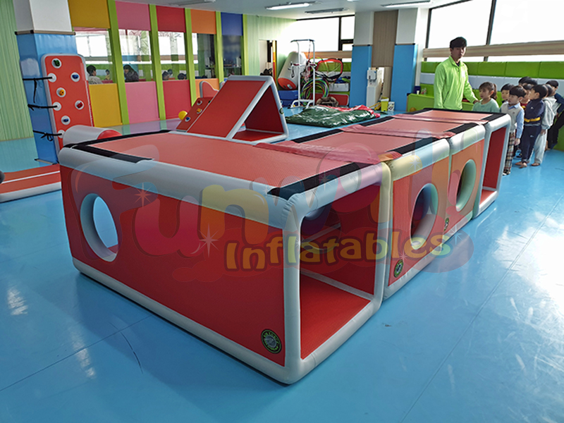 Impianto sportivo per giochi aerei in cui i bambini possono fuggire dal labirinto usando un cubo d'aria di dimensioni 90 e dimensioni 180. Il labirinto può essere creato e utilizzato perché può essere collegato in qualsiasi direzione attraverso il velcro superiore (spazzamento).