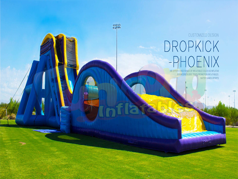 Questo scivolo gonfiabile è supportato da una robusta struttura a tubo grande, e il telaio è stato ulteriormente potenziato con più strutture tubolari. Il telaio del tubo rende questo acquascivolo gigante relativamente più leggero per il grande progetto di divertimento. Il vetrino è un materiale scivoloso speciale, liscio.
