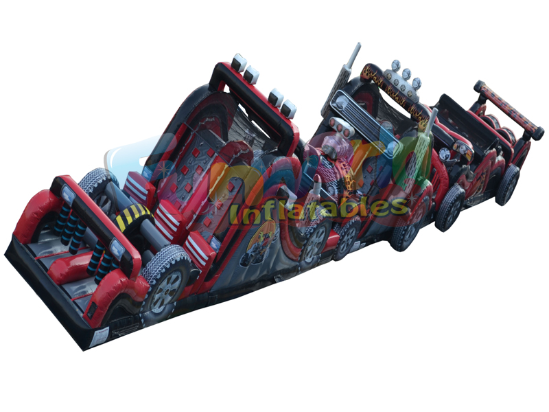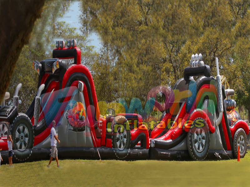 La gara del trattore è un percorso a ostacoli lungo 33 metri in cui due concorrenti iniziano alle due buche d'ingresso della sezione "CRUISER" del percorso a ostacoli. Dopo aver fatto strada attraverso 2 barriere gonfiabili separate e spremuto attraverso alcune barriere gonfiabili, hanno bisogno di arrampicarsi sulla piccola parete da arrampicata su roccia, scivolare giù per lo scivolo e correre per continuare sulla seconda sezione - la sezione "TRUCKER". I concorrenti quindi combattono attraverso un altro giro di barriere gonfiabili, poi su per un'altra arrampicata su roccia, giù per lo scivolo e sull'ultima sezione, il "ROTDER CALDO". I concorrenti ora strisciano sotto o sbattono attraverso alcune barriere sospese gonfiabili, si arrampicano sopra e attraverso la successiva serie di barriere, si arrampicano su e sopra una gobba, zigzagando attraverso l'ultimo giro di ostacoli per superare il traguardo, 33 metri dopo! L'aspetto del percorso ad ostacoli di questo gommone rende l'attrazione ancora più divertente e attraente!
