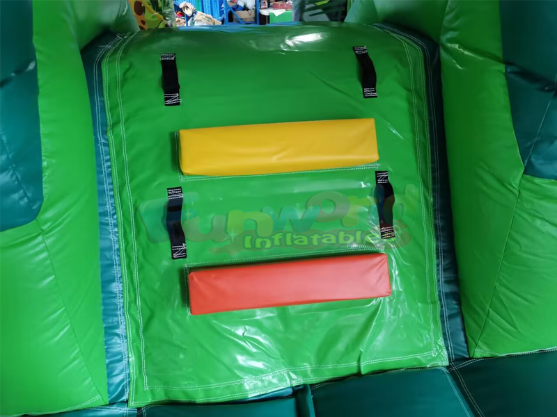 This inflatable safari combo bouncer is a large inflatable bounce house with climbing ramp and slide. Features a capacity of approximately 8-10 children . After the day of playing is through, zippered flaps allow the bouncer to be easily deflated and taken down for storage. Bouncer is constructed from 100% PVC vinyl, from its upright pillars and beams to its slide walls. All high-stress areas, including the bouncing surface, mattress sides, bottom, and slide are made from industrial strength, 18-ounce (0.55mm) PVC. This puncture-proof PVC material is much stronger (approximately 5X stronger) than nylon used in lesser-quality units as it won't tear, fade, wear out with use, or get moldy, and it is far easier to clean."