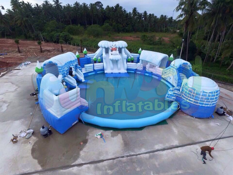 Inflatable water park games is the world's first giant mobile water park which is very safety used on the land and sea shore.It is made up of two components: inflatable water amusement facilities and amusement services.Both of children and adults will find there is a lot of fun when they playing inside it.We can swimming in the pool world,climbing on the mountain then sliding down from the top.Otherwise,we will find that it is so miraculous we can play a lot of water floating toys in the big adult inflatable pool.Such as water totter,iceberg,water trampolin,aqua glide and so on.Welcome you contact us to get more details about it.