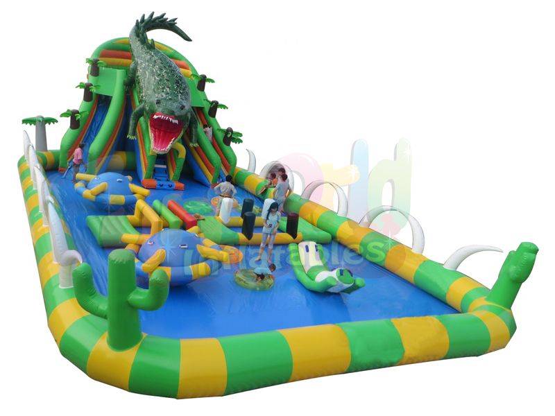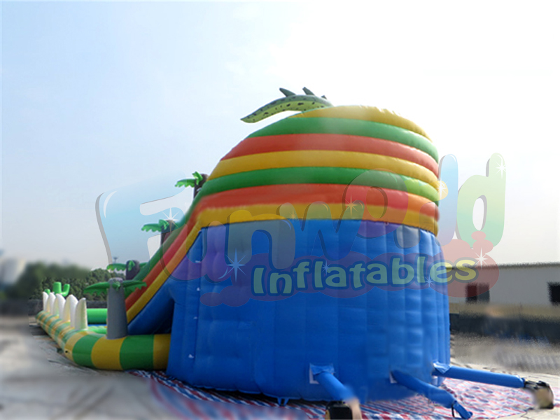 Almost any adult and even a small child can not deny themselves the pleasure of splashing in cool water on a sultry summer day. And what can we say about inflatable water parks, especially if there is presented such an original inflatable attraction in the form of dinosaur slipping slide structures, which amazes with its commercial grade design and fine professional workmanship. We have done everything to make it as comfortable and convenient for you as possible. This was accompanied by our experience, ability, our own production base and the presence of highly qualified specialists. Such inflatable water parks are a great way to relax and enjoy your holiday on any hot day.