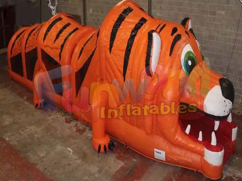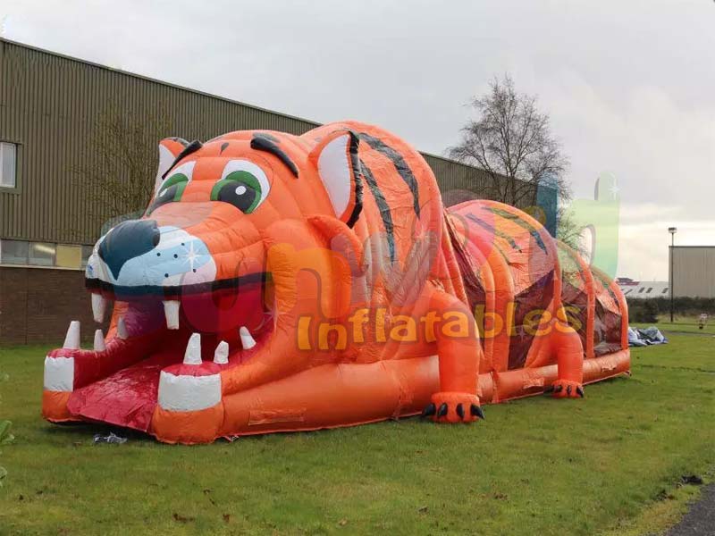 It is a huge hit with children. It is a 2 lane rush obstacle course which you enter through Tiger's mouth and it consists of slides, pop up obstacles, tunnels and bouncy areas! Whether you are planning a birthday party for your kid, or a big corporate event you can't go wrong with our tiger obstacle course! Kids are going to love inflatable tunnel obstacle course and spend lots of time playing inside of that huge creature!