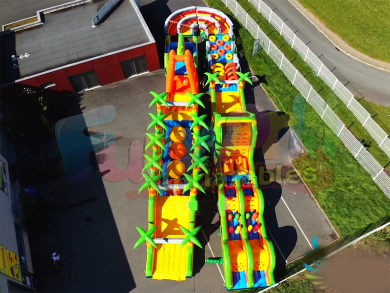 Go on an onslaught in the vastness of the tropical jungle. Run, climb, hang and challenge the clock. The more adventurous will complete the course in about 45 seconds. Allow 3 minutes for the slowest players. The exceptional dimensions of this giant inflatable game make it a popular activity for everyone! The 5 meters high at the highest point and its 70 meters total length consist of many parts of the simplest to the most difficult.