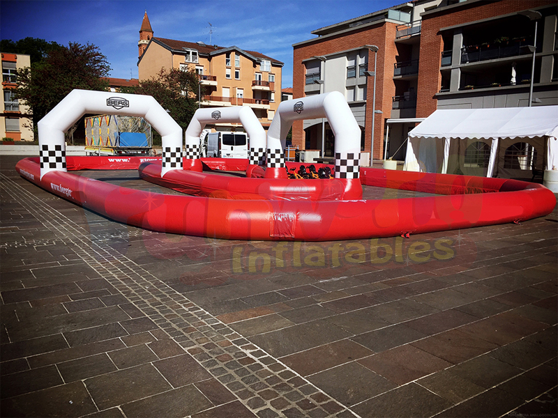 Easy to install and transport, the inflatable circuits allow you to organize races larger than life in record time (for small motorized vehicles, go-karts, bikes, tricycles, bubbles, remote-controlled cars) . This human inflatable race track is very suitable for kids.