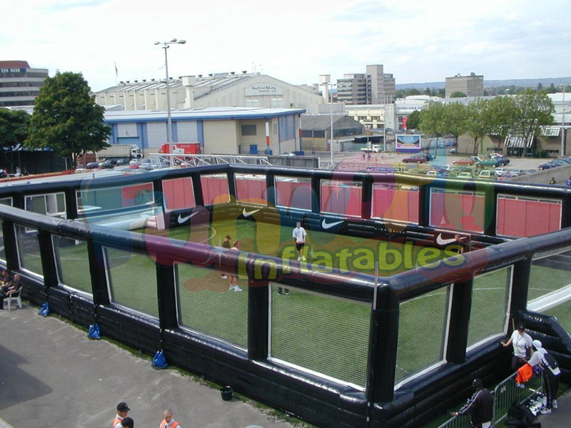 ملعب كرة القدم قابل للنفخ هو ملعب كرة قدم قابل للنفخ مع حصيرة قابلة للإزالة. وعلاوة على ذلك ، يتم إرفاق حصيرة مع الفيلكرو. هذا لأن القاع يمكن إزالته يستخدم في مسار الصابون. علاوة على ذلك ، فإن حوائط الساحة مثالية وتسمح للاعبين برد كرة القدم من فوقهم.